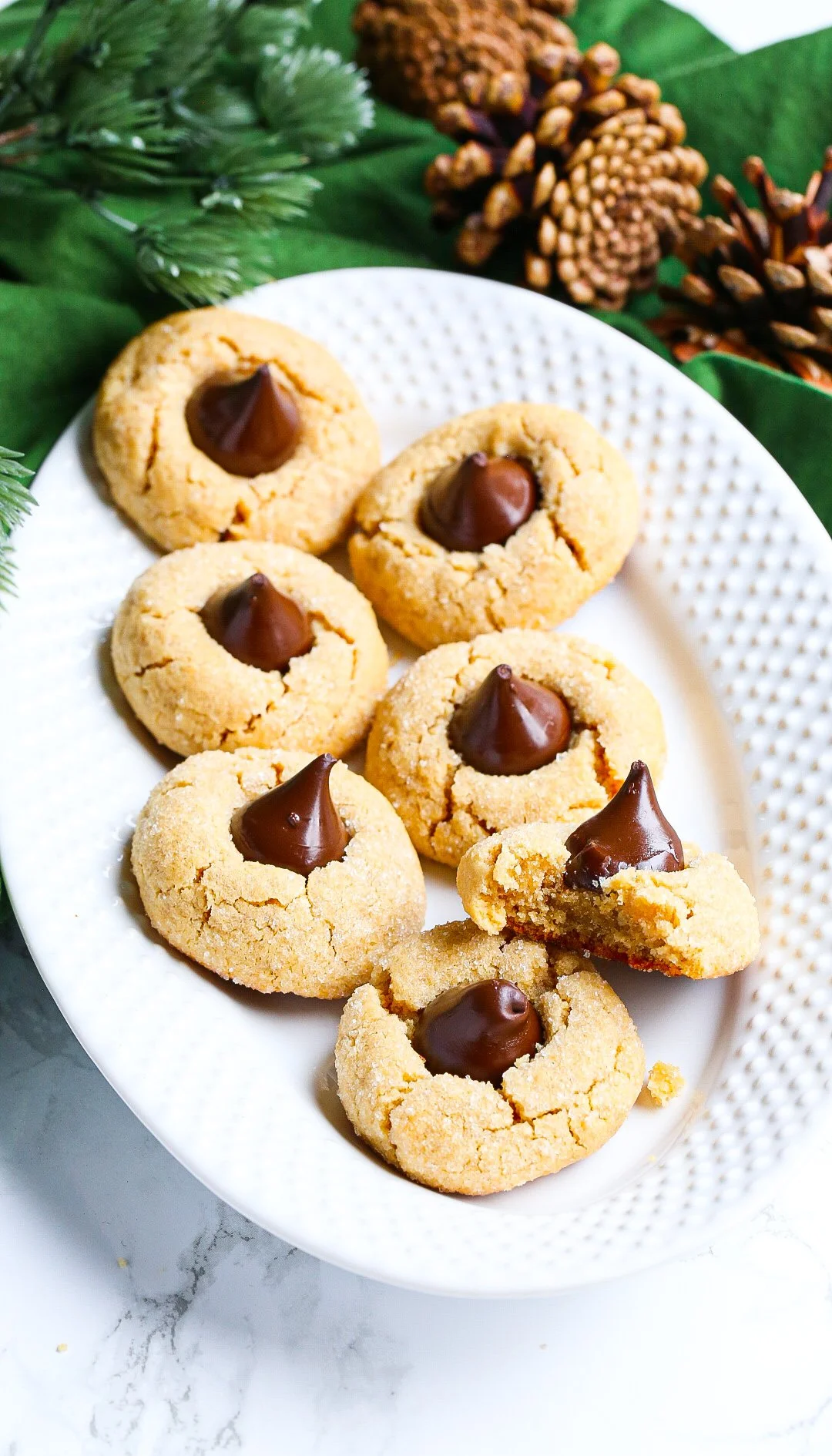 Hershey Kisses are not dairy free. I wish they would get with the program and make some for us. (maybe one day!) Until then you have two options. Use a large dairy free chocolate chunk OR make your own dairy free kisses. Its way easier than you think.. you just need the right mold. I have a whole recipe post dedicated to making your own here in the club. These cookies in these photos are using my homemade dairy free kisses. They are super legit.